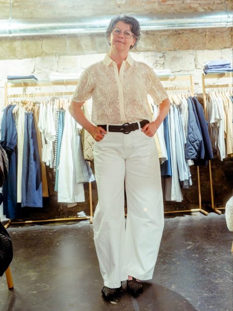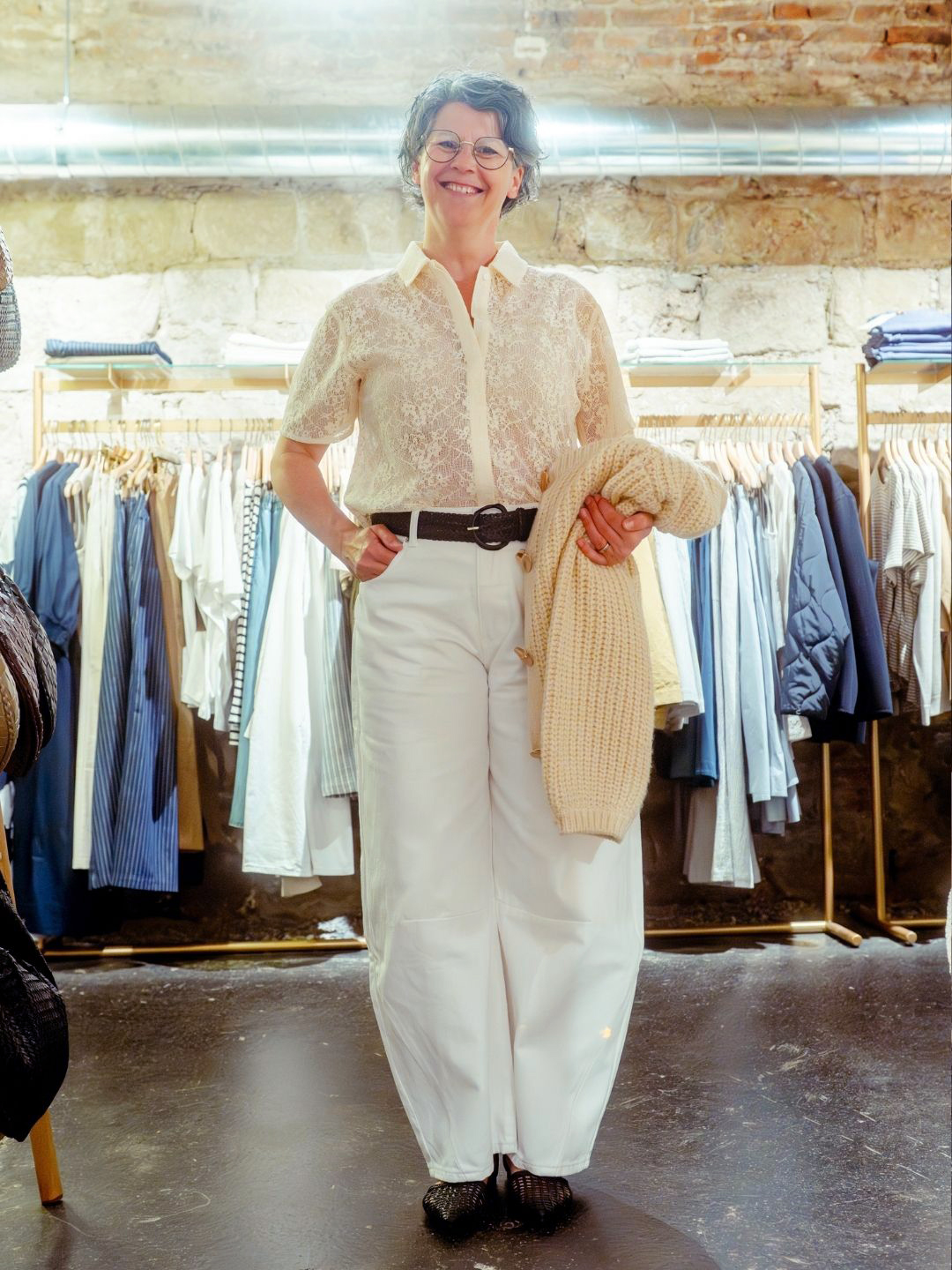 Die verdeckte Knopfleiste unterstreicht die cleane Optik und lässt die feine Spitze besonders zur Geltung kommen. Die kurzen Ärmel machen das Modell ideal für warme Tage und vielseitige Kombinationen – ob lässig zu Denim oder elegant zu Stoffhosen und Röcken.