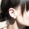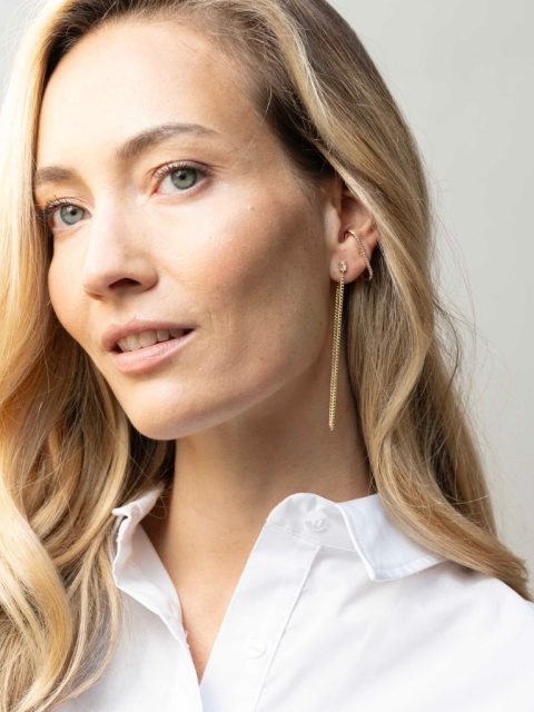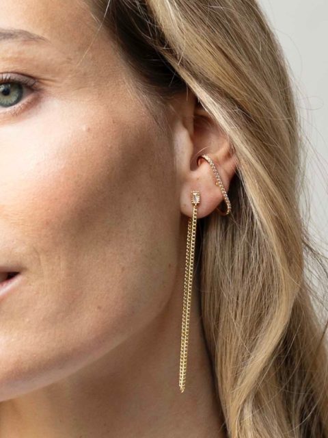 Einzelner ovaler Ohrring mit Strasssteinen. Die Länge des Ohrrings beträgt 2,5 cm. Der Stecker befindet sich in der Mitte des Ohrrings.