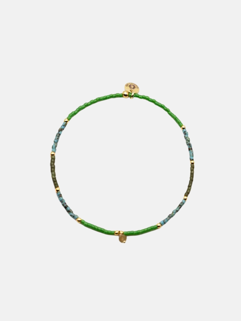 Armband auf Elastikband mit Sterlingsilber vergoldet, Miyukiperlen, Edelstein-Anhänger