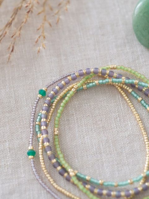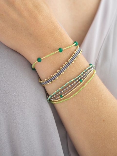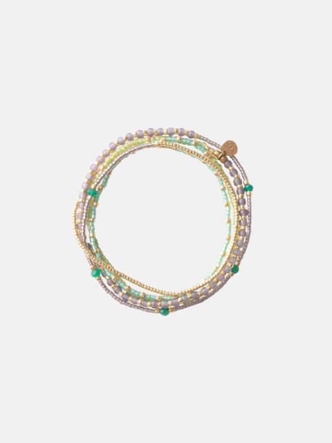 Das Respect Armband von A Beautiful Story ist aus Glasperlen und mit kleinen Edelsteinen besetzt. Das Armband kann mehrmals um den Arm gewickelt werden.