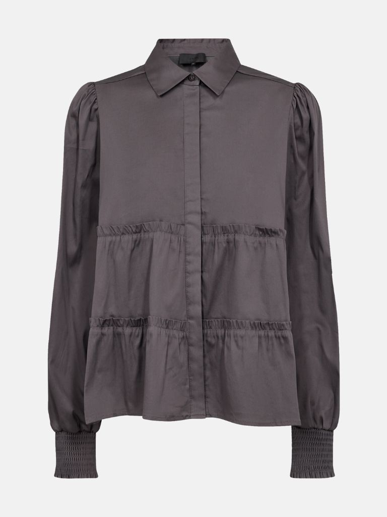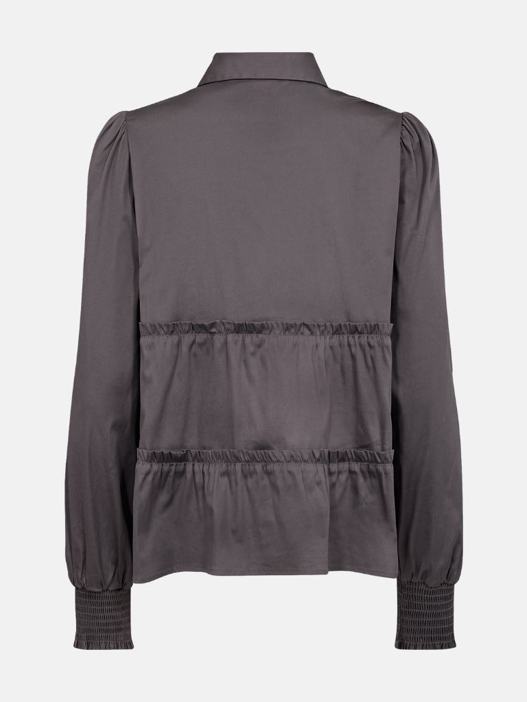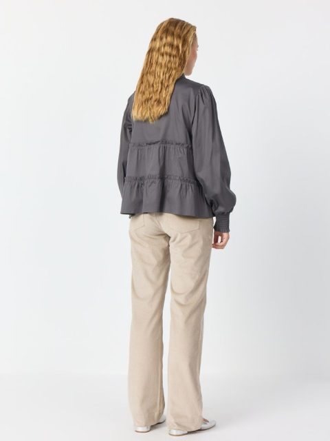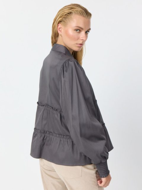 Süsse Bluse von Levete Room aus leicht schimmerndem Stoff und Volant Details. Sorgt für einen femininen Touch und eine A-Linien Form. Der tolle Smog Bund am Arm ist ein weiteres Detail dieses tollen Stücks. Sie ist kurz geschnitten und hat einen tollen Tragekomfort. Drei weitere Farben erwarten dich im Web Shop.