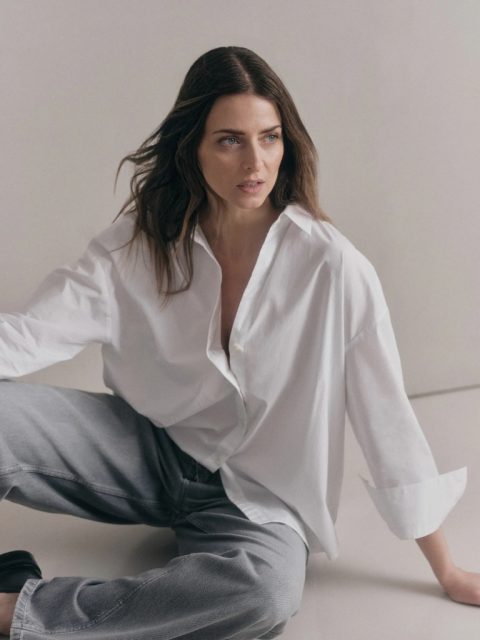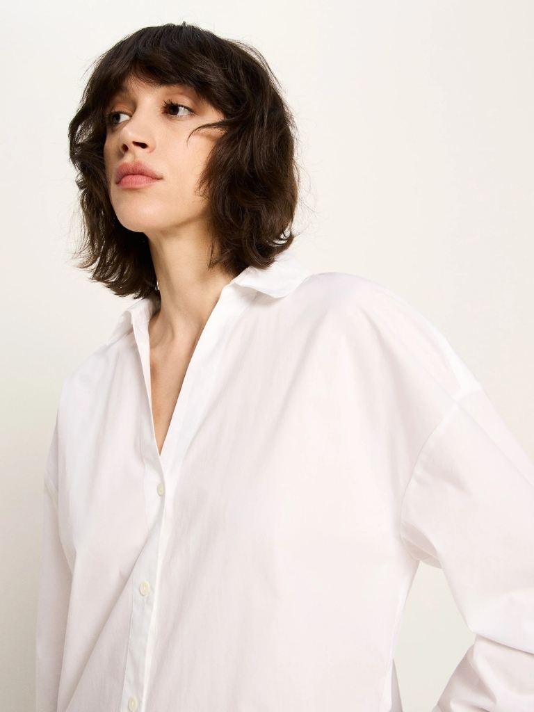 Bluse – Oversize Hemdbluse GOTS, White