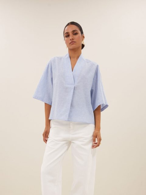 Bluse – Owen Pinstripe, Sky Blue