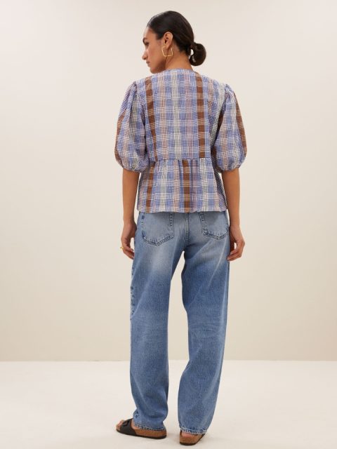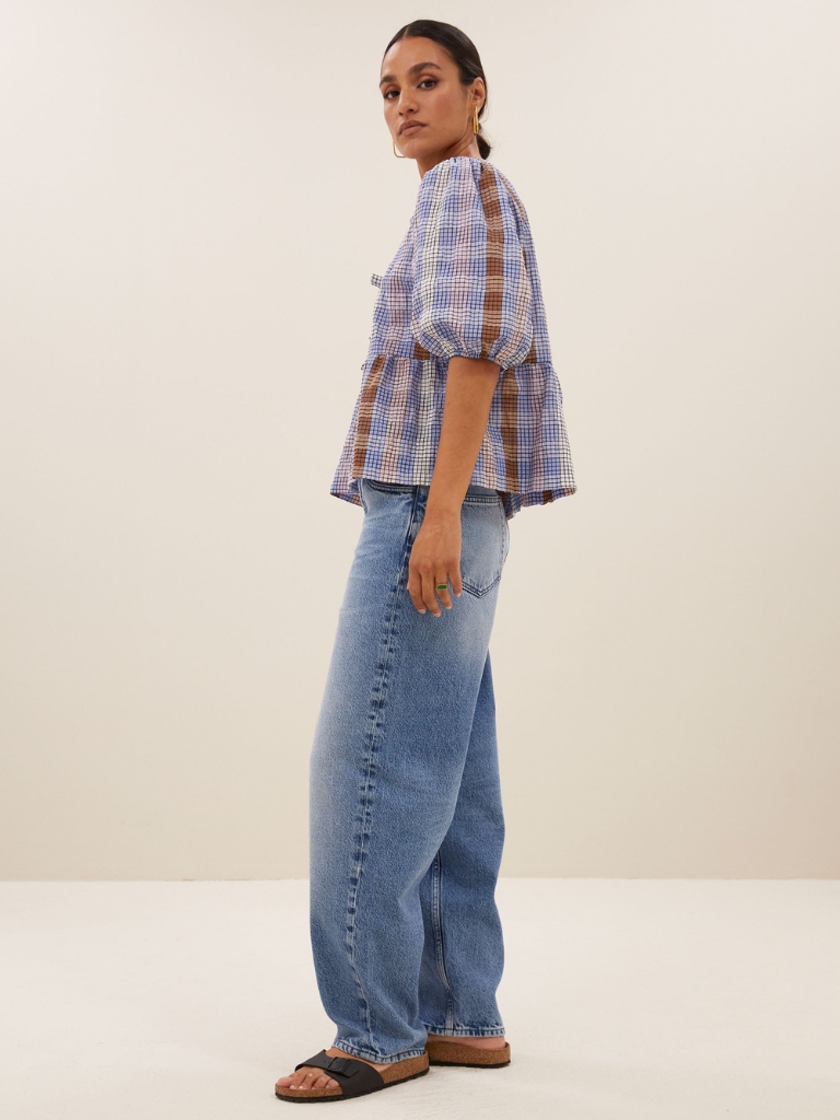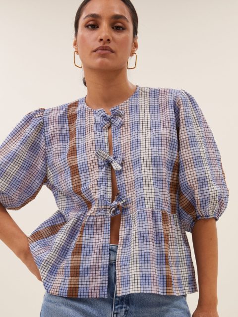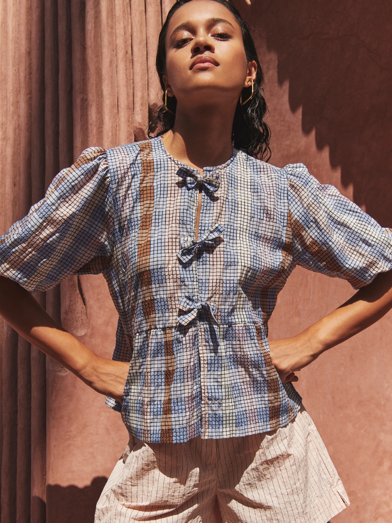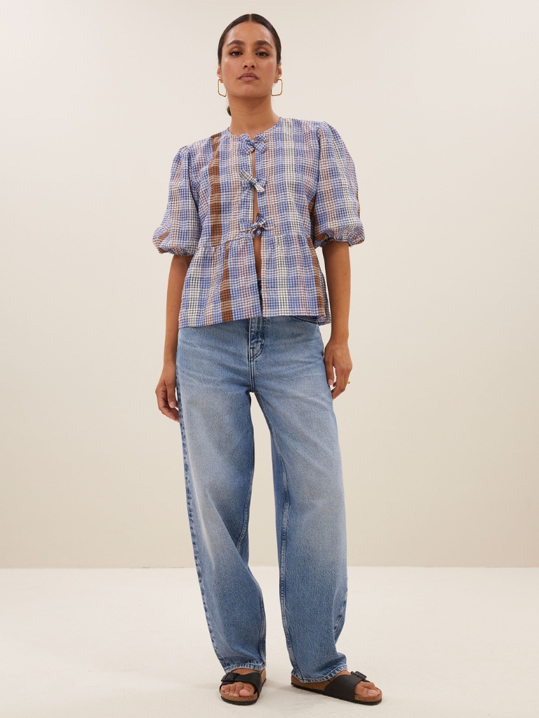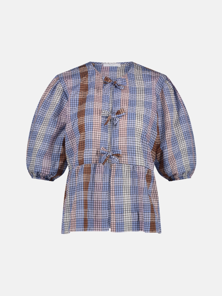 Entdecke die serena check blouse in einem grid print! Diese lässige Bluse mit normaler Passform und Puffärmeln ist perfekt für jeden Anlass. Der runde Ausschnitt verleiht einen verspielten Touch, während das Karomuster deinem Outfit einen frischen Look verleiht.