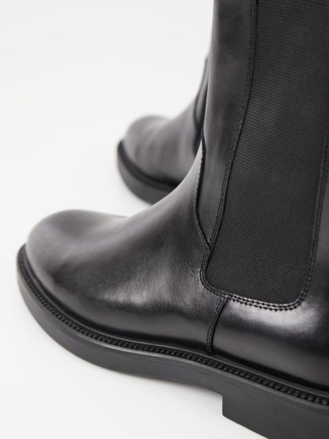 Alex W ist unsere aktualisierte Version der klassischen Chelsea-Boots. Das Modell ist aus schwarzem Leder mit mandelförmiger Zehenpartie, Zuglasche und elastischen Einsätzen. Der Stiefel hat eine robuste Sohle und einen 33 mm hohen Absatz. – Schwarzes Leder – Runde Zehenpartie – Elastische Einsätze – 33 mm Absatz – Zuglasche Für eine längere Haltbarkeit: Verwenden Sie eine schwarze Schuhcreme und Imprägnierspray für zusätzliche Pflege und Schutz. Normal ausgemessen