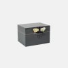Im Inneren sorgt ein herausnehmbares Tablett mit kleinen Fächern für eine übersichtliche Aufbewahrung von Schmuck, Accessoires oder anderen kleinen Gegenständen. Die Aussenseite ist in einem stilvollen Slate-Ton gehalten, während das Innere in Denim gestaltet ist. Das Tablett in Beetroot setzt dabei einen ausdrucksstarken Farbakzent.