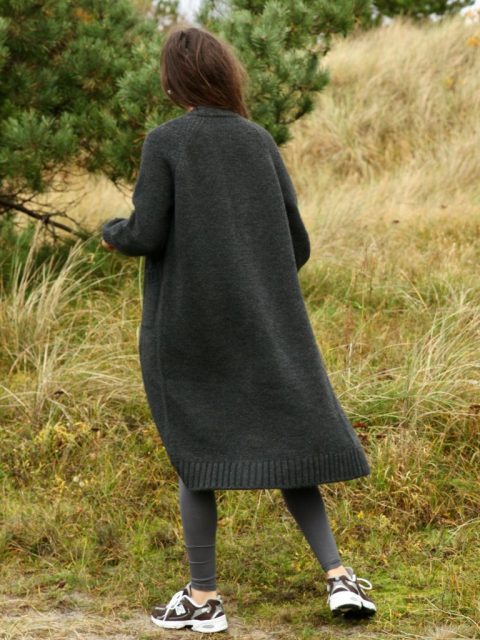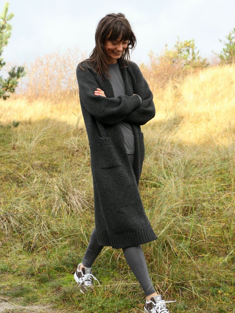 Gemütlicher und wärmender Cardigan mit einer angenehmen Dicke und weichen Stoffen. Die längere Passform sorgt für ein behagliches Styling, ideal für einen entspannten Look. Bitte überprüfe die Grössentabelle, da Comfy auch grössere Grössen anbietet.
