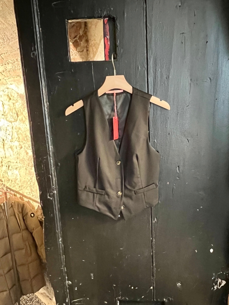 Super schöne Nadelstreifen-Weste, die du zu Jeans, Stoffhosen oder eleganten Hosen tragen kannst – ganz, wie du magst. Sie kann klassisch wirken, aber auch modern, je nachdem, wie du sie stylst. Anliegend.