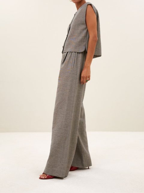 Entdecke das Nori Melange Gilet – eine stilvolle Ergänzung für eine moderne, casual-chic Garderobe. Mit seiner bequemen, regulären Passform und dem klassischen Rundhalsausschnitt überzeugt das ärmellose Design durch eine klare, elegante Silhouette.