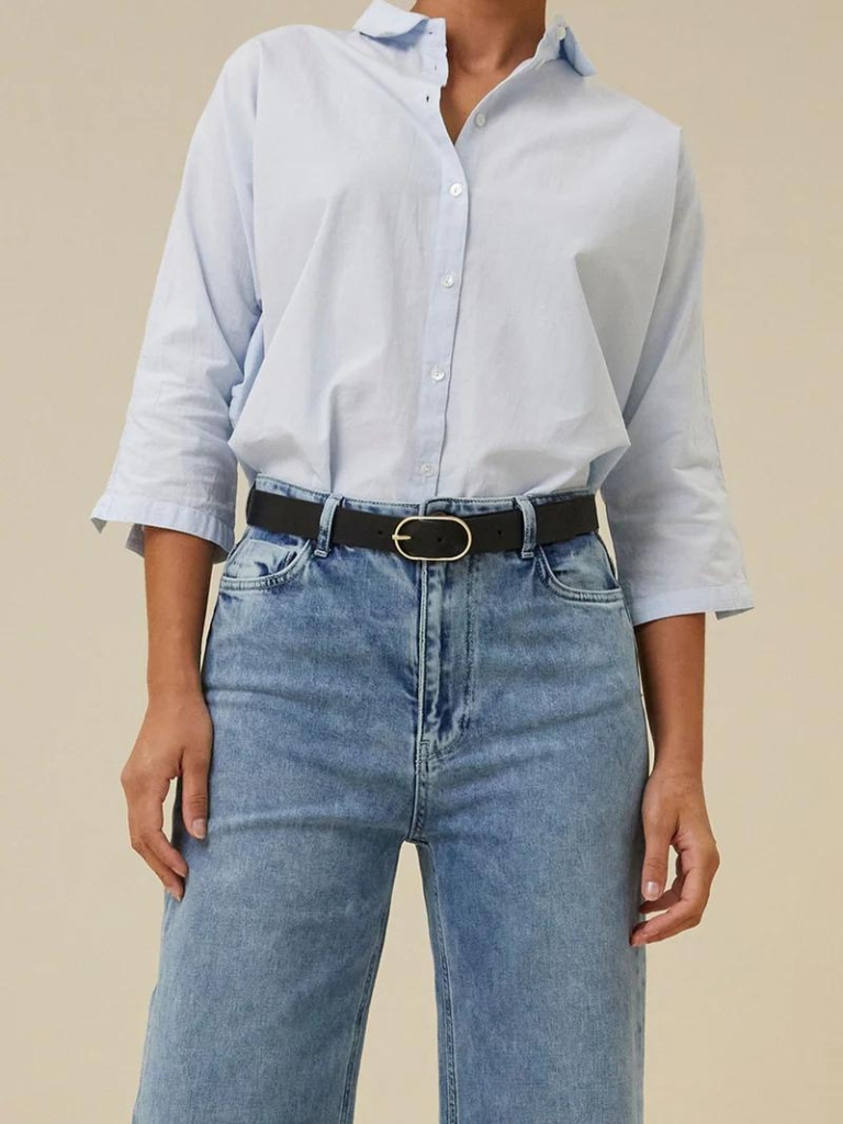 Flexibles Leder-Gürtel mit Messingschnalle, hergestellt von einem Familienunternehmen.