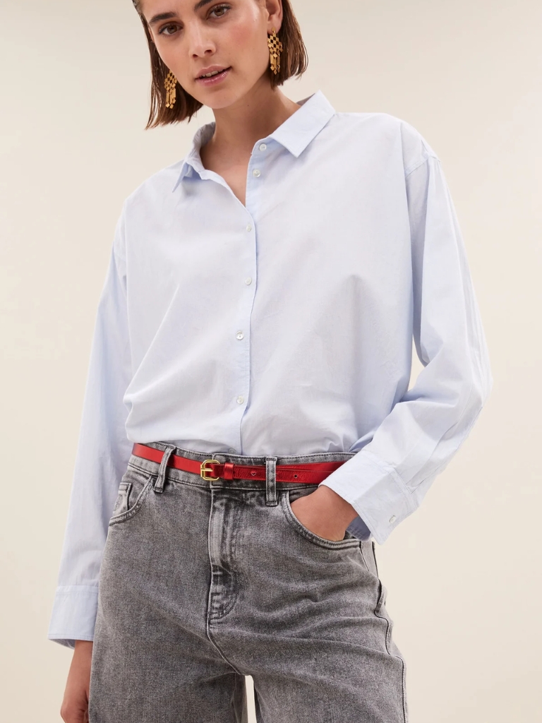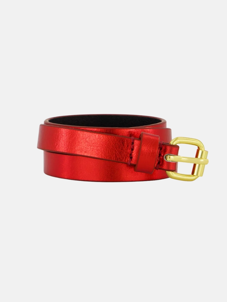 Raffiniert mit einem auffälligen Twist: Der Julie Gloss Belt ist aus weichem Leder gefertigt und verleiht jedem Outfit einen stilvollen Akzent. Die goldfarbene Schnalle rundet das Design elegant ab.