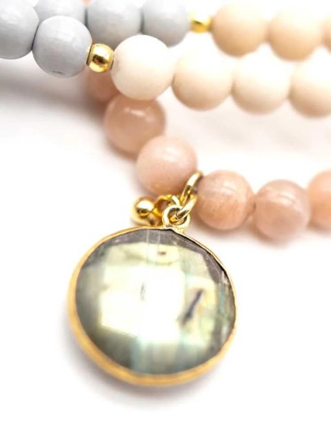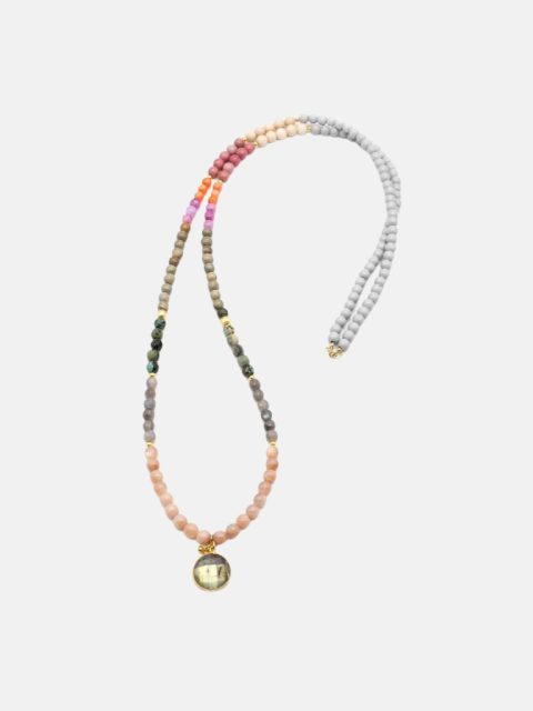 Kette lang mit vergoldeten Sterlingsilberperlen, verschiedene Edelsteinperlen und Labradorit-Anhänger