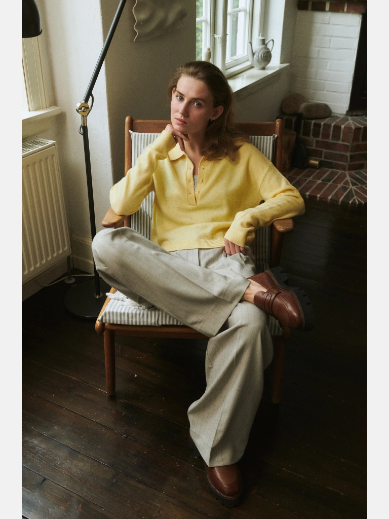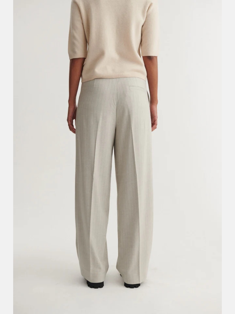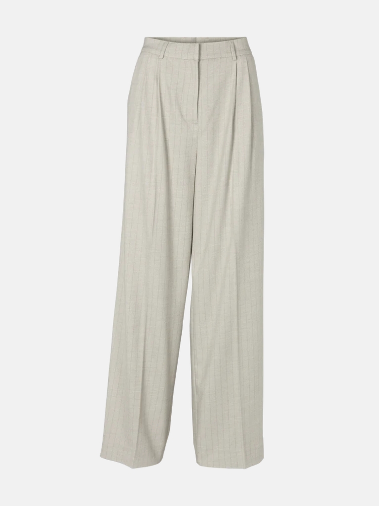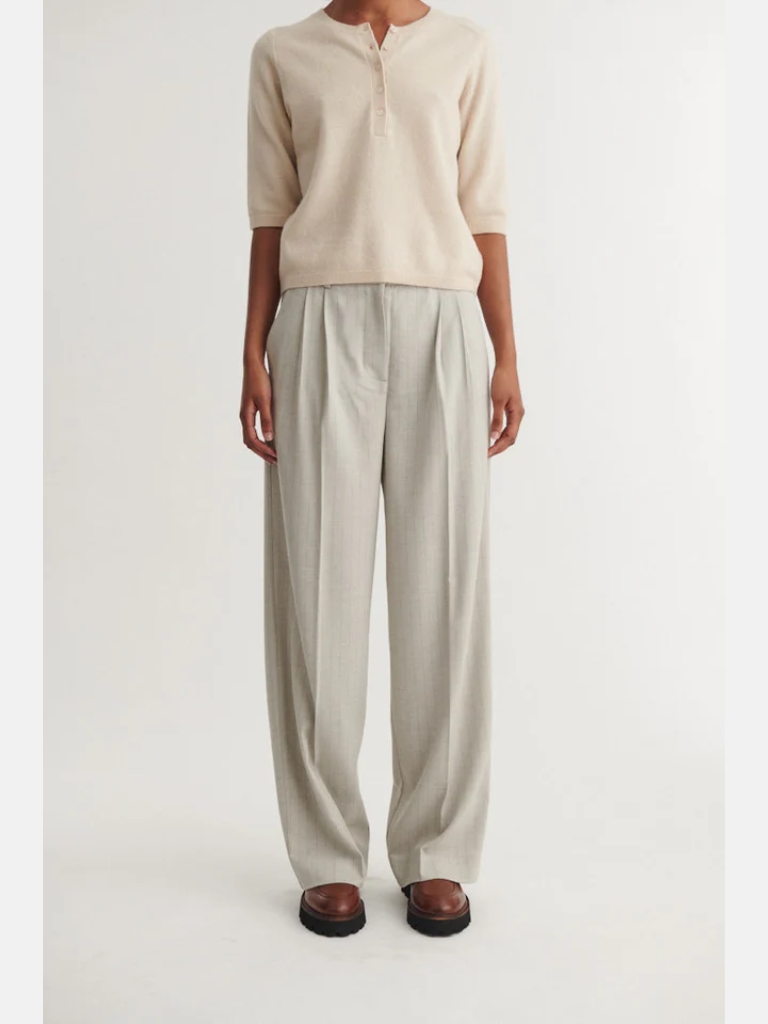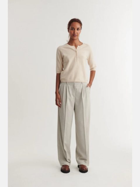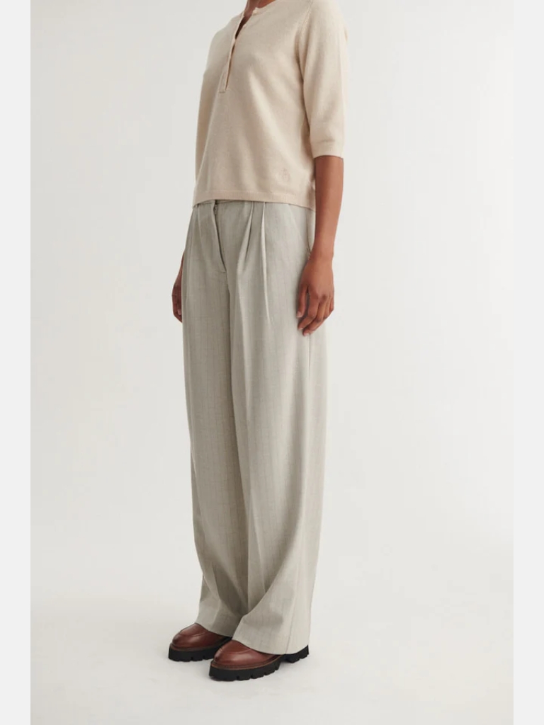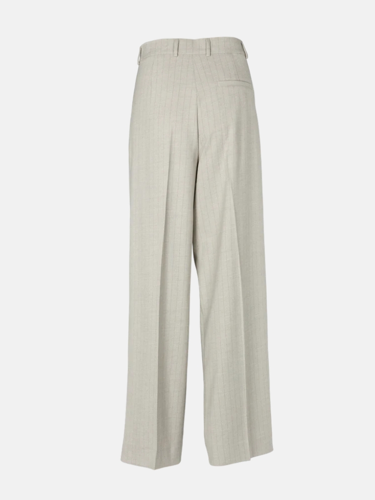 Diese weit geschnittene Hose mit Bundfalten und schrägen Taschen, die für einen entspannten und zugleich ausgewogenen Look sorgen. Die fliessende Silhouette verleiht der Hose Bewegung, während die Falten Struktur und eine stilvolle Note hinzufügen.