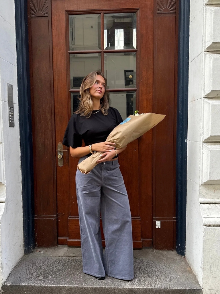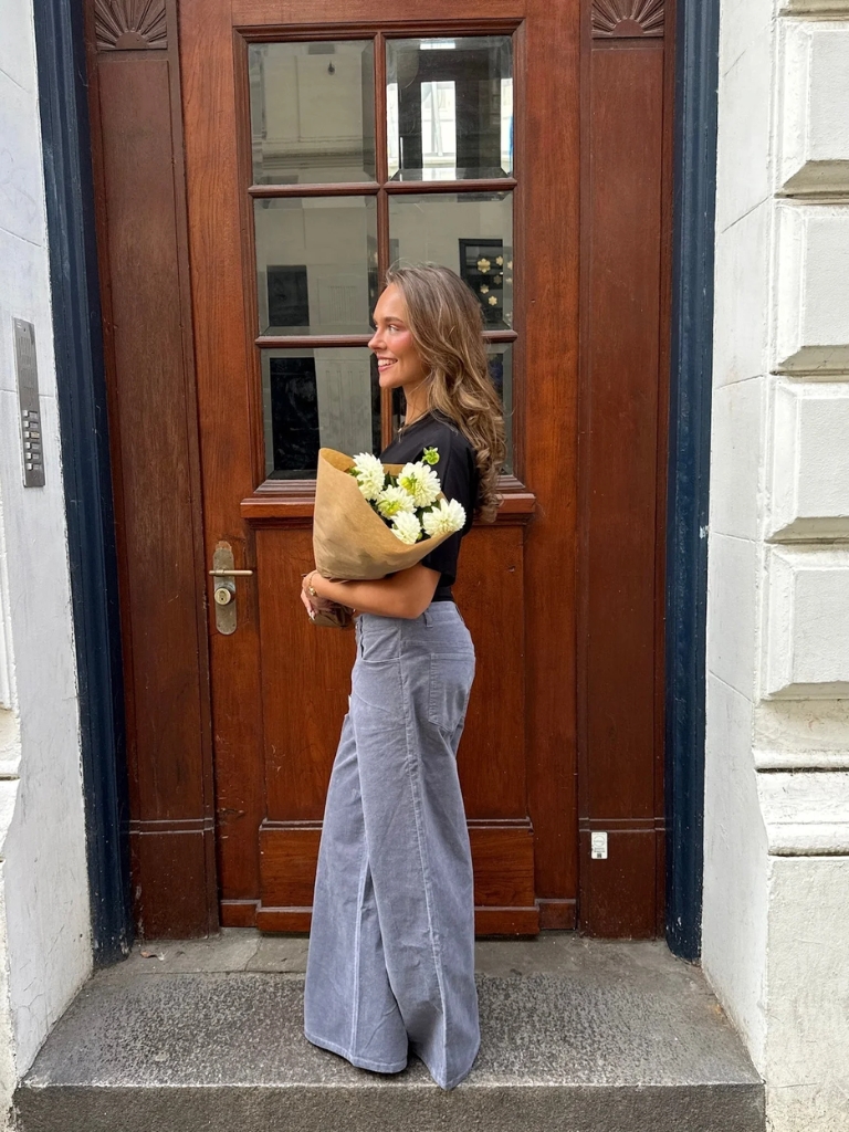 Diese weite Cordhose in einem weichen Blauton ist die perfekte Kombination aus Komfort und Coolness. Die Hose hat eine entspannte Passform mit einer hohen Taille und weiten Beinen für einen modernen Look. Das weiche Cordmaterial verleiht ihr Textur und Wärme und macht sie ideal für Herbst und Frühling – aber mit dem richtigen Styling auch das ganze Jahr über perfekt.