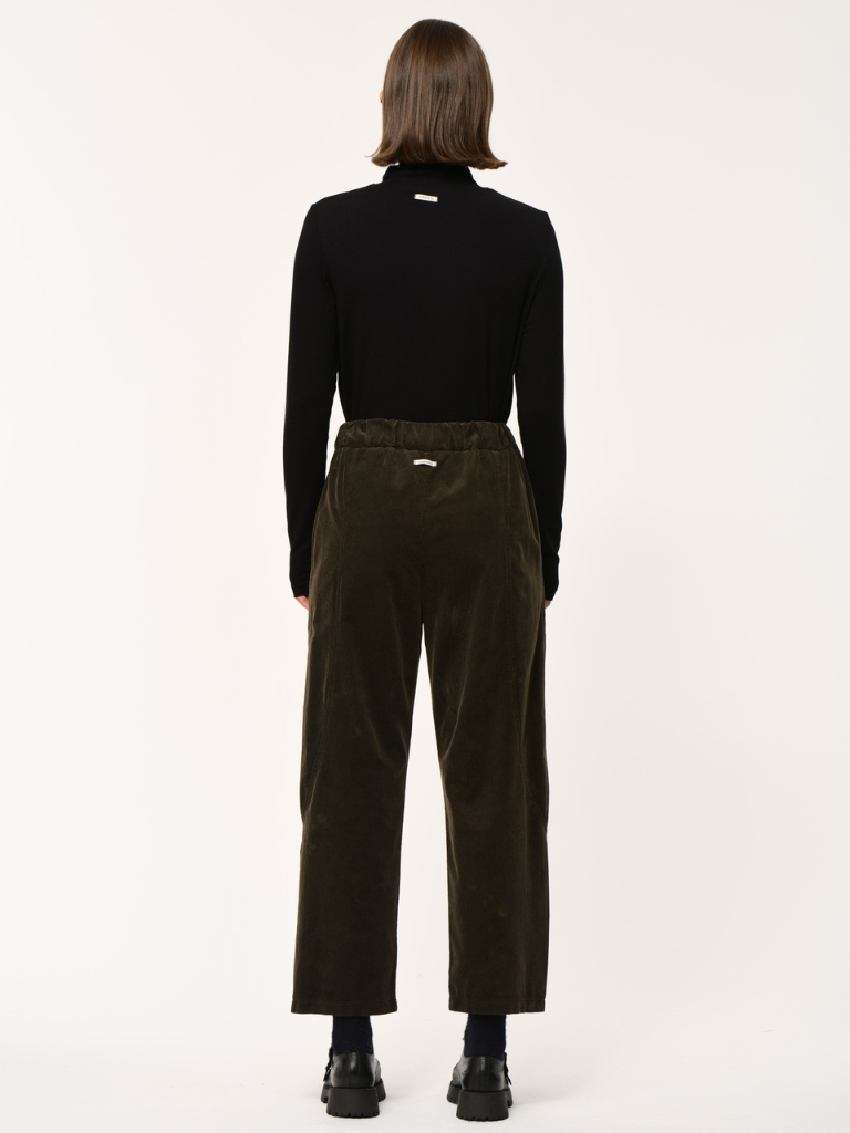 7/8-Hose aus geripptem Cord mit abgerundetem Schnitt und dekorativen Teilungsnähten.