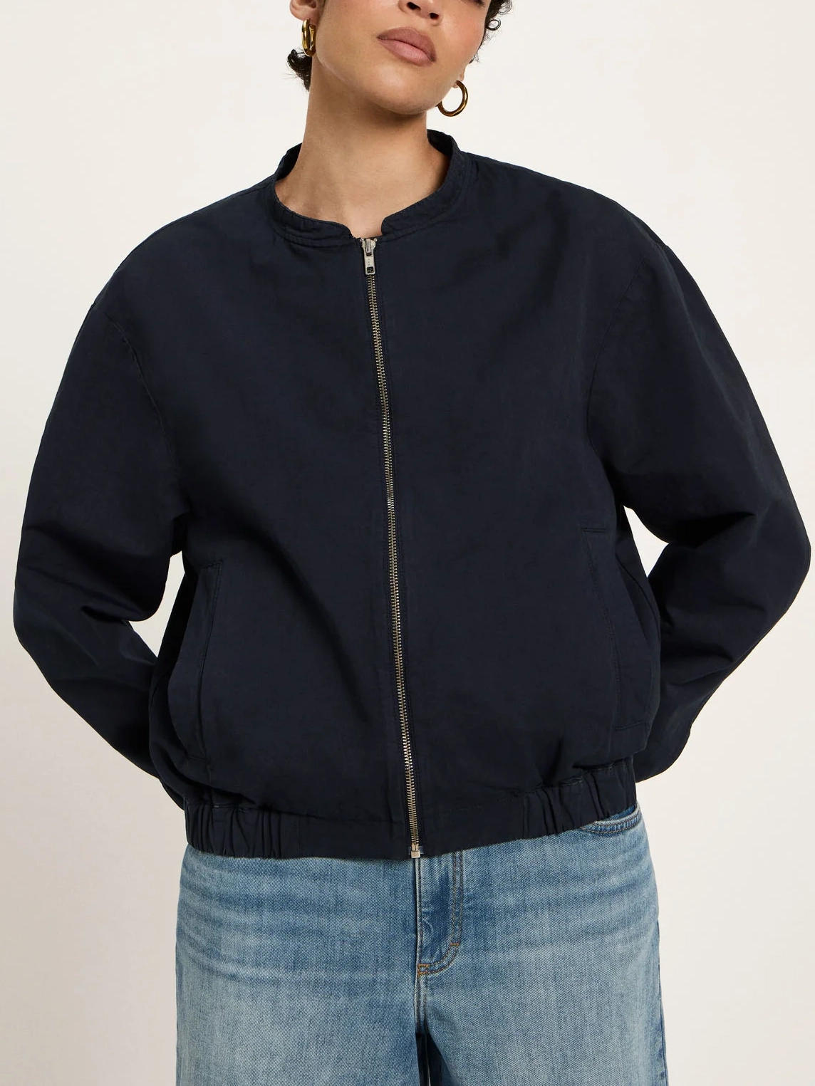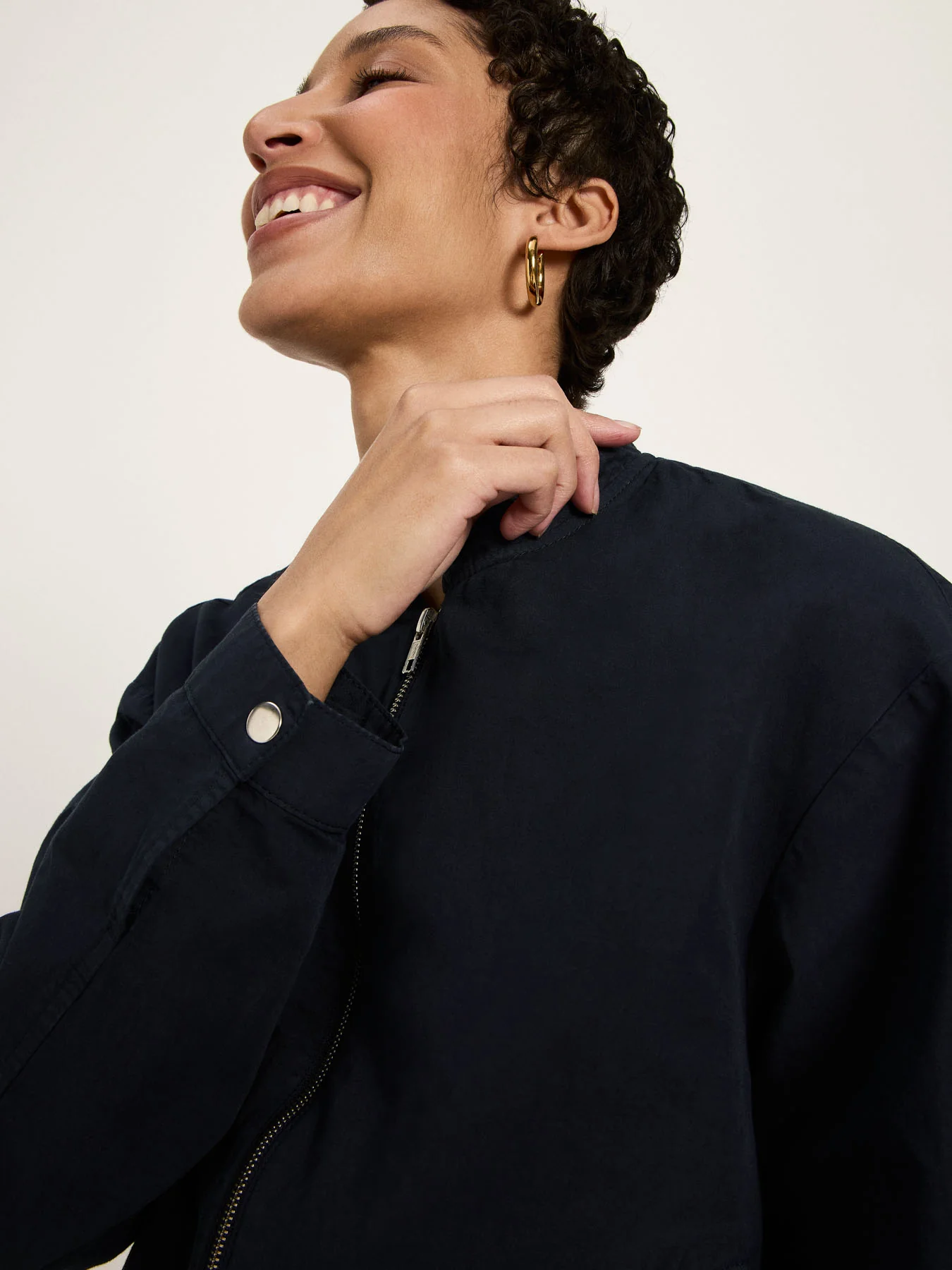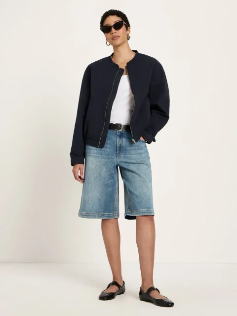 Dieser Blouson aus Bio-Baumwolle und Leinen ist ein modernes Essential für entspannte Looks mit Stil. Der cleane, zeitlose Schnitt trifft auf eine natürliche Materialmischung, die angenehm leicht ist und für ein komfortables Tragegefühl sorgt – ideal für Übergangstage und kühle Sommerabende. Mit seinem reduzierten Design lässt sich die Jacke vielseitig kombinieren: lässig zu Jeans und Sneakern, modern über Kleidern oder als stilvoller Kontrast zu Rock und Tailoring-Pieces.
