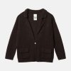Er ist mit fallendem Revers, Fronttaschen mit Klappen und einem Einknopfverschluss designt. Der Schnitt ist klassisch, leicht länger und die feine Rippstruktur sorgt für zusätzliche Form und Eleganz.
