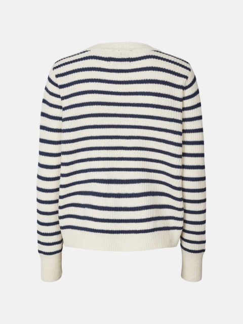 – Lange Ärmel mit einem kleinen Detail aus weißem Strick an der Schulter, das diese schön betont