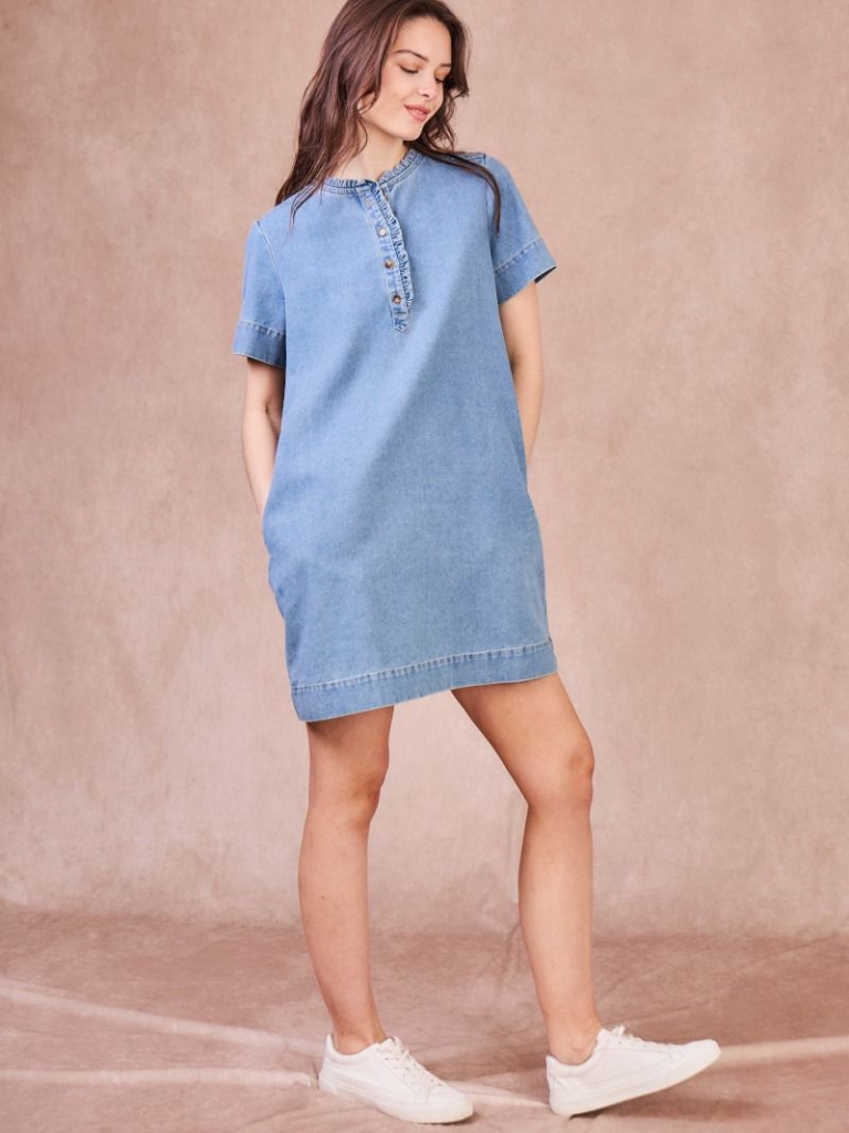 Kleid – Kleid mit Kräuseln GOTS, lapis