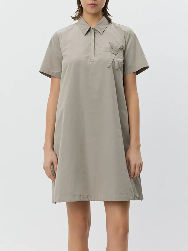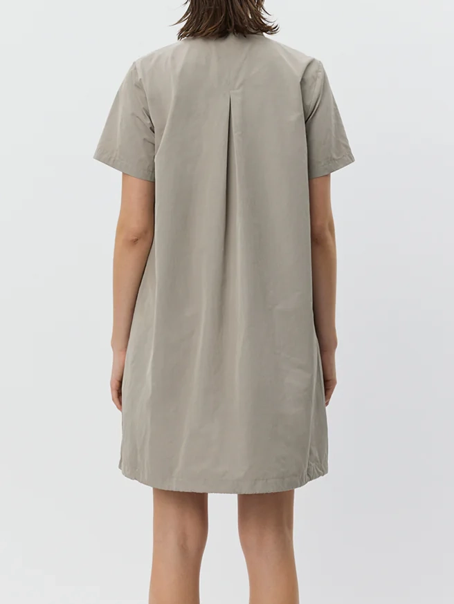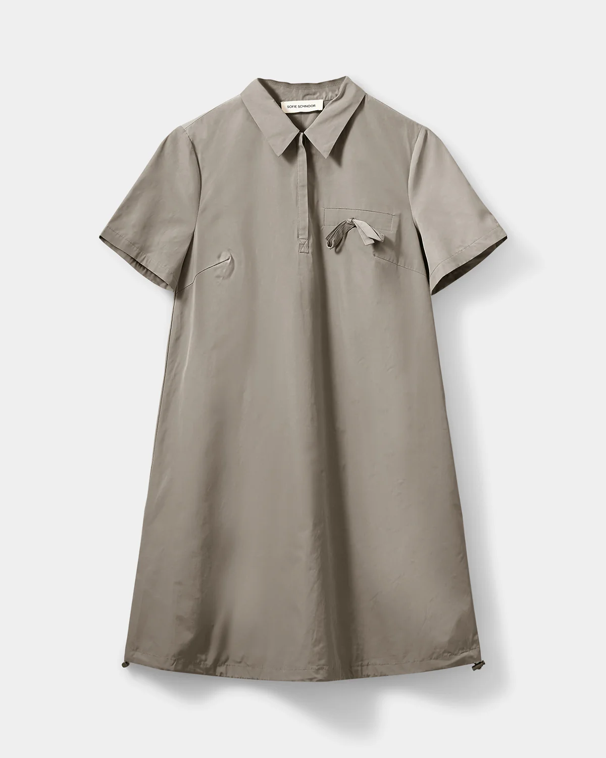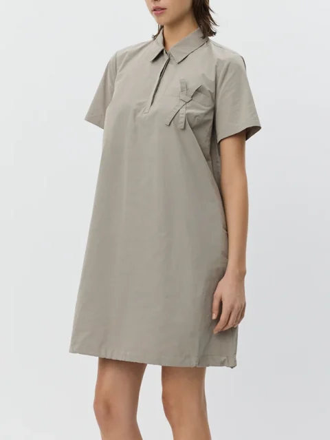 Dieses Kleid von Sophie Schnoor vereint eine moderne Silhouette mit durchdachten Details und lässiger Eleganz. Der A-Linien-Schnitt schmeichelt der Figur und wird durch kurze Ärmel sowie eine tief angesetzte, mittige Falte stilvoll ergänzt, die dem Design Bewegung und eine besondere Struktur verleiht. Ein verdeckter Reissverschluss sorgt für ein cleanes Finish, während die dekorative Tasche mit feinem Bänderdetail einen subtilen, verspielten Akzent setzt.