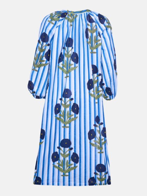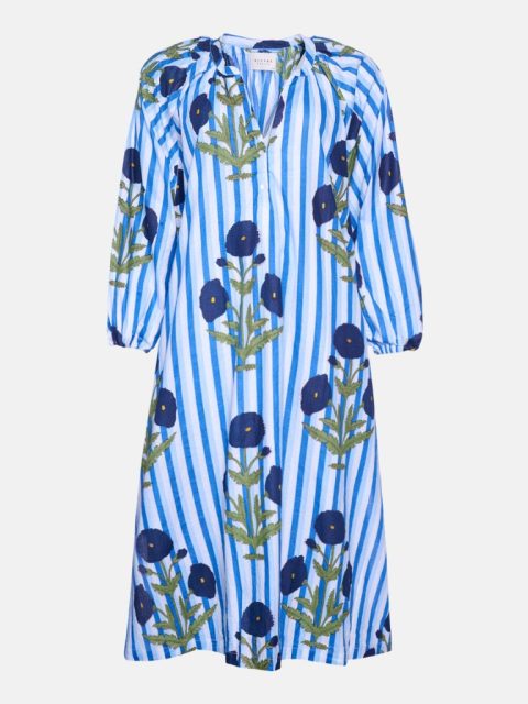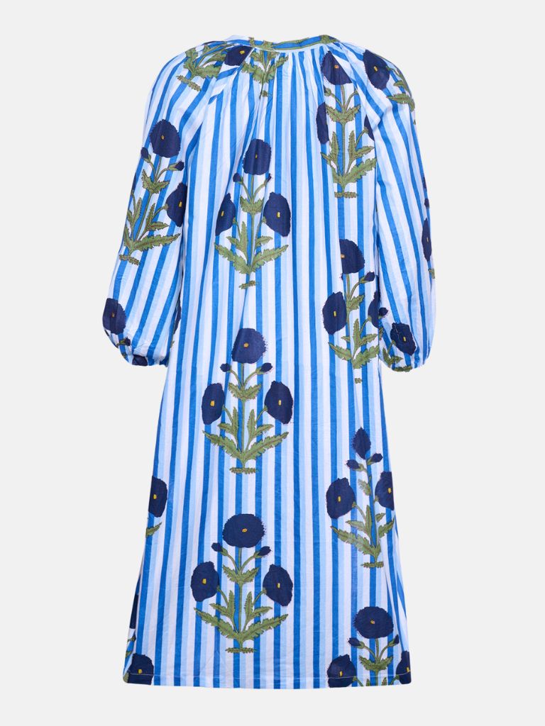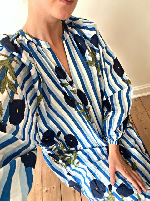 Süsses Kleid von Sissel Edelbo aus Bio-Baumwolle. Das Kleid ist One Size und daher locker geschnitten. Für Grösse 36 bis 42 sicherlich tragbar. Durch den zusätzlichen Bindegürtel lässt sich die A-Linien Form verändern und das Kleid bekommt einen neuen Style. Auch hat es zwei seitliche Taschen für die Lässigkeit des Looks. Die Länge ist gut übers Knie und es hat noch zwei seitliche Schlitze.