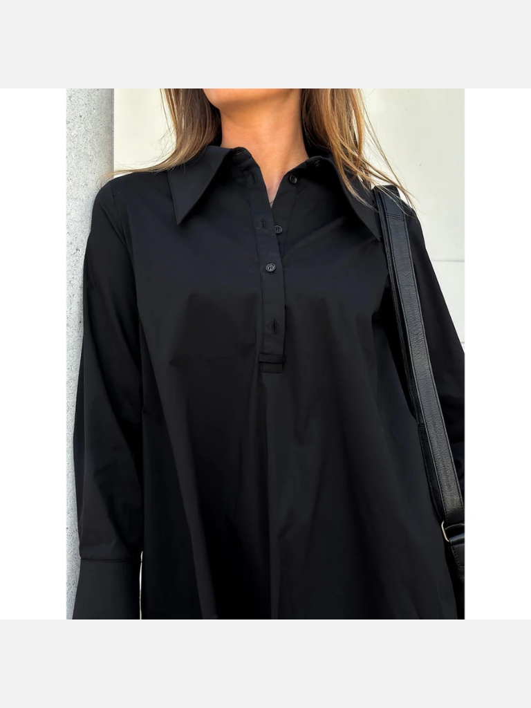 Eines der auffälligsten Details des Sharon Dress ist sein einzigartiger Kragen, der dem Design eine moderne und zugleich raffinierte Note verleiht. Es lässt sich auf unzählige Arten stylen und eignet sich perfekt sowohl für formelle Anlässe als auch für einen Tag im Büro. Ob Meeting, Feier oder einfach ein bequemer Alltagslook – das Sharon Dress wird schnell zum neuen Lieblingsstück.
