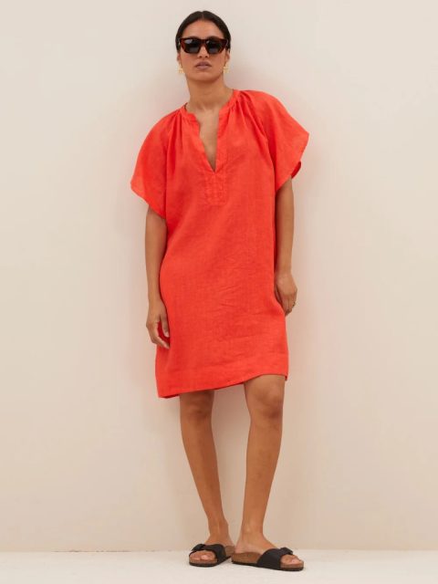 Kleid – Vina Linen, Bright Poppy