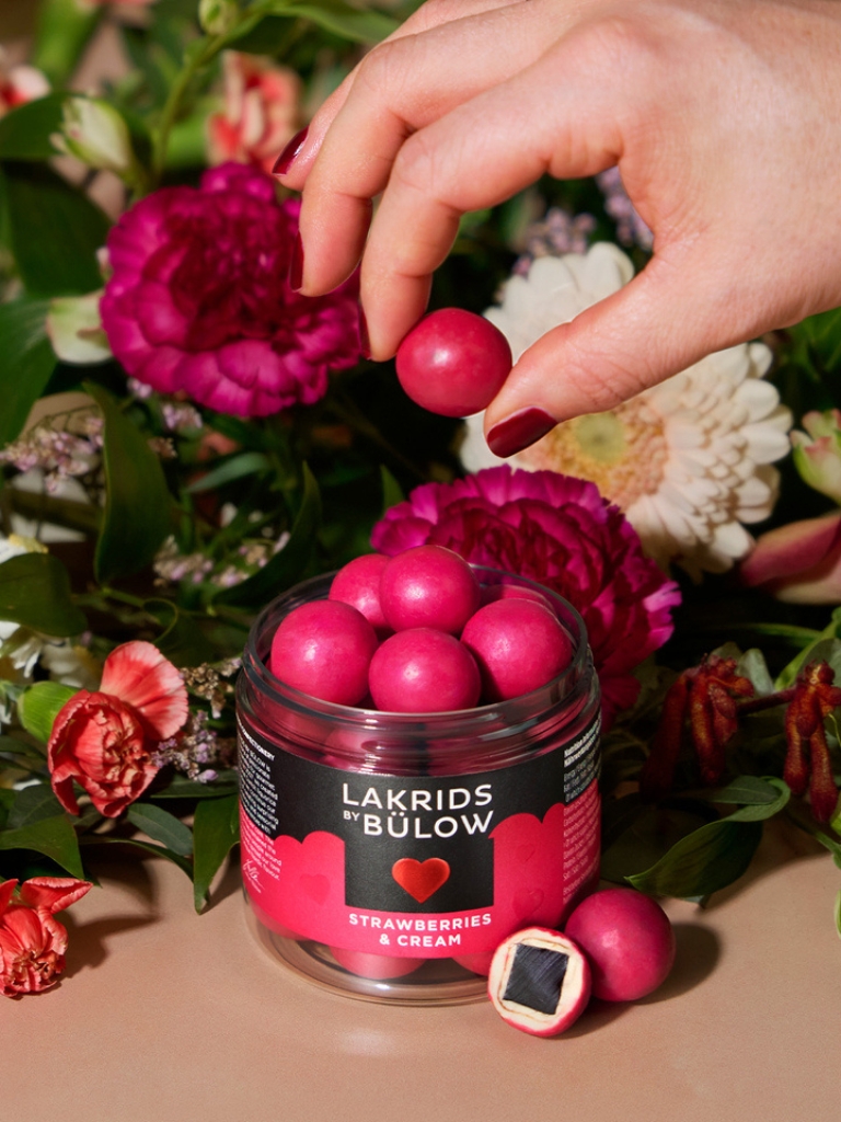 Entdecke die süsse Harmonie aus fruchtigen roten Erdbeeren, zarter Sahne und feiner Lakritze. Ummantelt von cremiger weisser Schokolade verschmelzen die Aromen zu einem aussergewöhnlichen Geschmackserlebnis. Eine perfekte Balance aus fruchtig, süss und leicht würzig – inspiriert von echter dänischer Genusskultur.