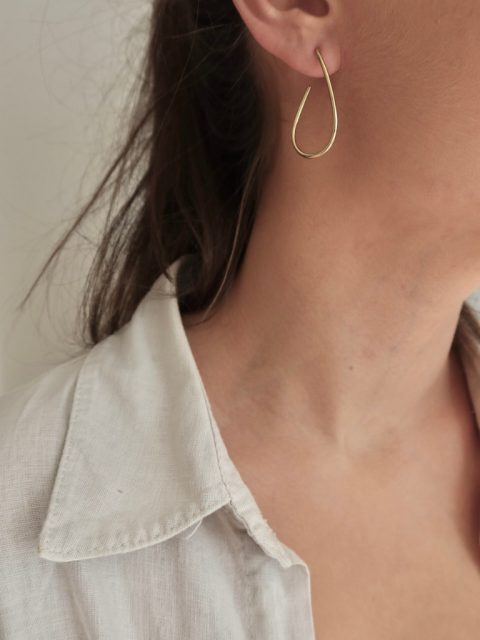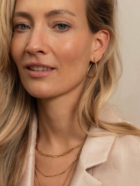 Vergoldete Ohrstecker in organischer Form. Länge: 3,5 cm. Die Dicke dieser feinen Ohrringe beträgt 1,2 mm. Vergoldet auf langlebigem Edelstahl.