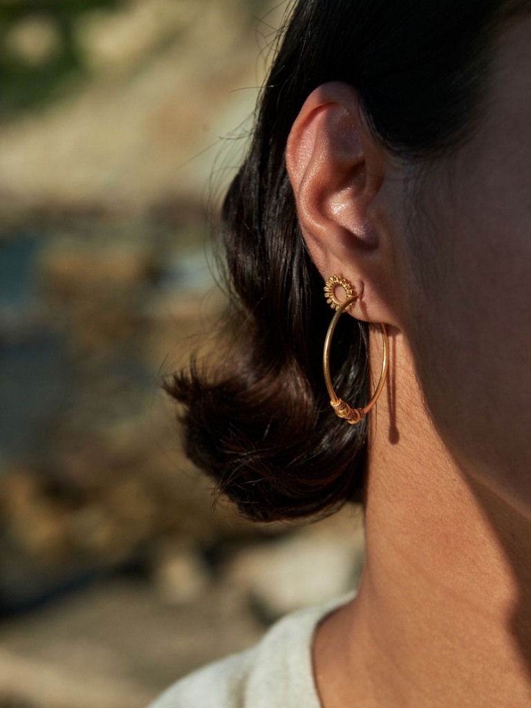 Die Ohrringe Ruby Stud in Gold sind ein klassisches und zeitloses Accessoire, das jedem Look eine elegante Note verleiht. Mit ihrem schlichten, aber stilvollen Design sind sie ideal für den Alltag oder besondere Anlässe. Diese Ohrringe sind ein absolutes Essential in jeder Schmuckkollektion und strahlen mühelos Eleganz aus.