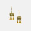 Asymmetrische Ohrringe aus vergoldetem Messing, verziert mit einer Mischung aus Halbedelsteinen wie Opal, Chalcedon, feiner Perle und Quarz. Ein moderner und eleganter Look.