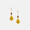 Elegante Ohrringe aus vergoldetem Messing mit einer besonderen Kombination aus schwarzem Rutilquarz, Rauchquarz und leuchtenden Rubinen. Ein auffälliges und stilvolles Accessoire.