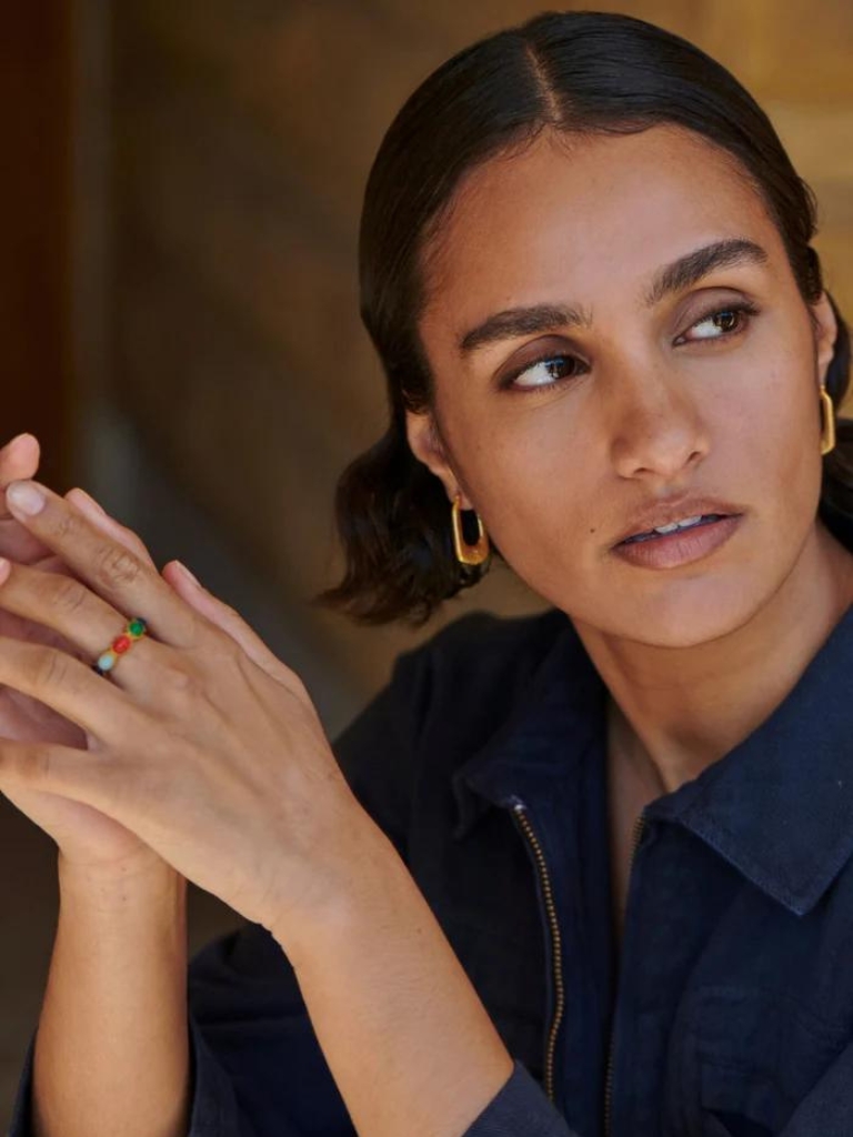 Die elegante Lou ist ein echtes Statement-Stück. Hergestellt aus nickelfreiem Kupfer und mit einer Schicht aus vergoldetem Finish versehen. Länge der Ohrringe: 2,5 cm. Die Ohrringe werden im Set verkauft.