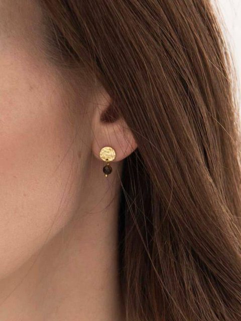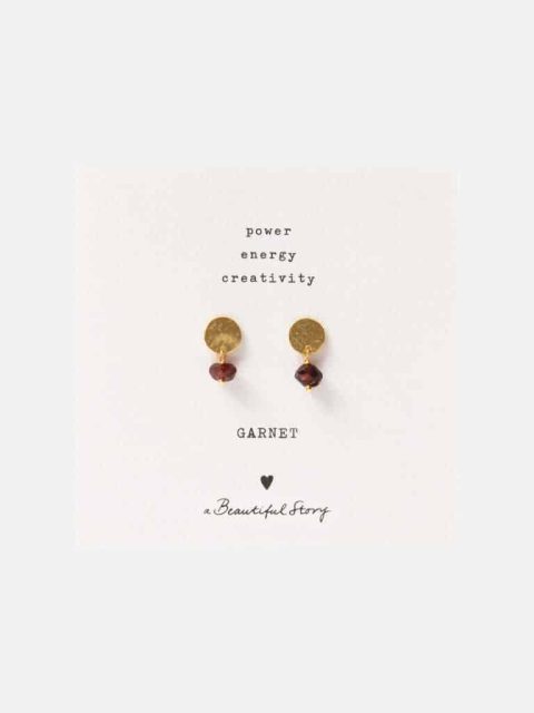 Die Mini-Coin Granat Gold-Ohrringe von A Beautiful Story sind kleine Ohrstecker mit einer Länge von 1,5 cm. Die Ohrstecker tagen eine Goldmünze und einen kleinen Granat-Edelstein.