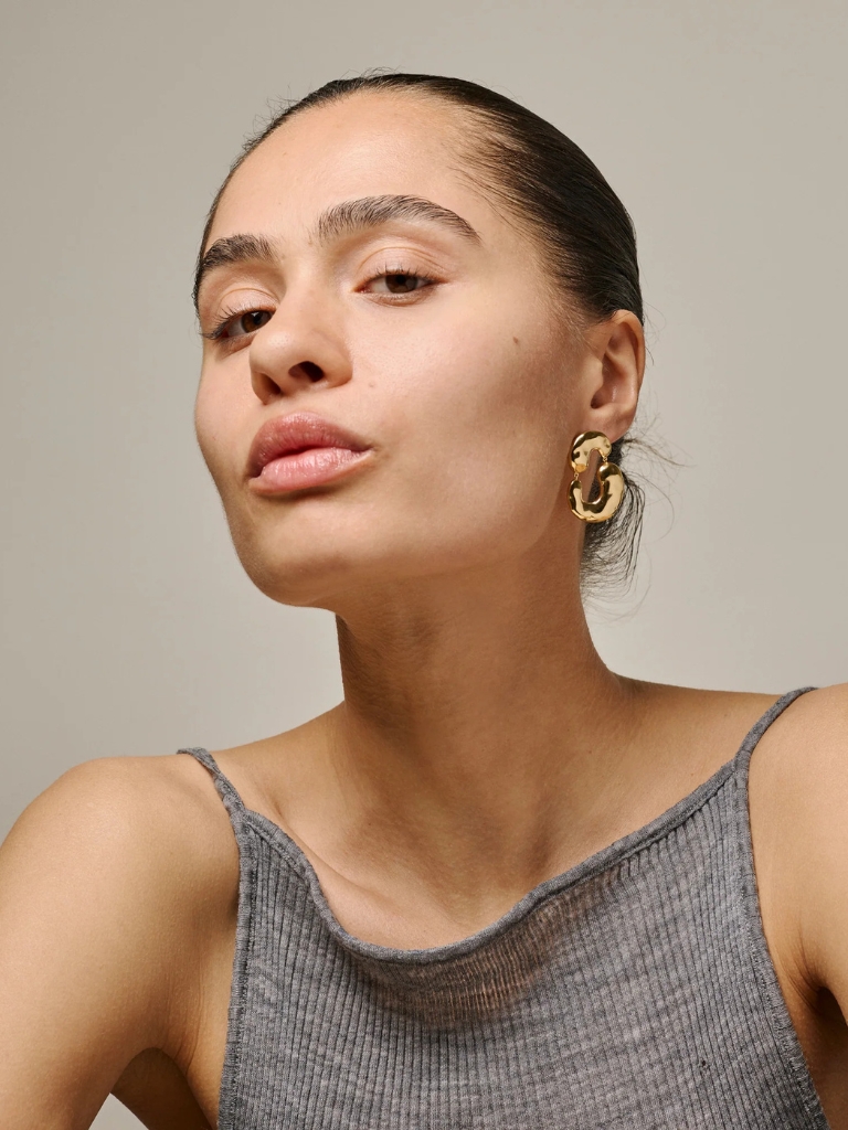 Der Viona Ohrring beeindruckt mit Volumen und Persönlichkeit – ideal für alle, die Schmuck lieben, der auffällt, ohne an Raffinesse zu verlieren. Eine kleine Skulptur fürs Ohr, die Modernität, Weiblichkeit und künstlerische Ausdruckskraft vereint.