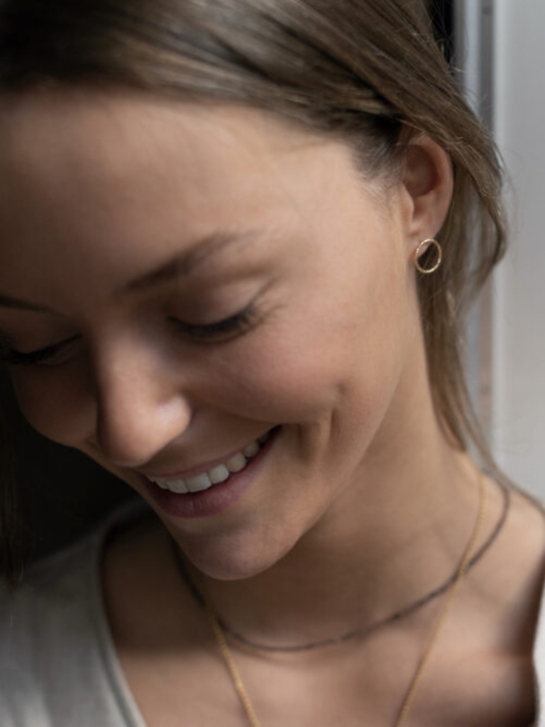 Feine, runde Ohrstecker. Extra vergoldet. Der Durchmesser beträgt 1,2 cm.
