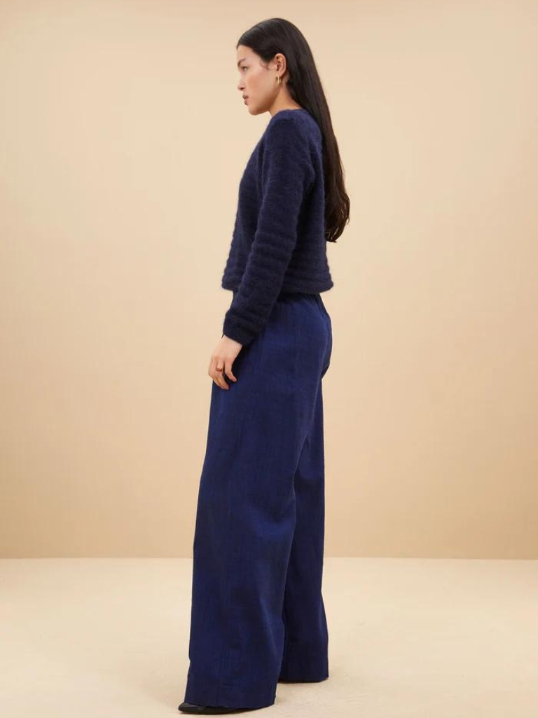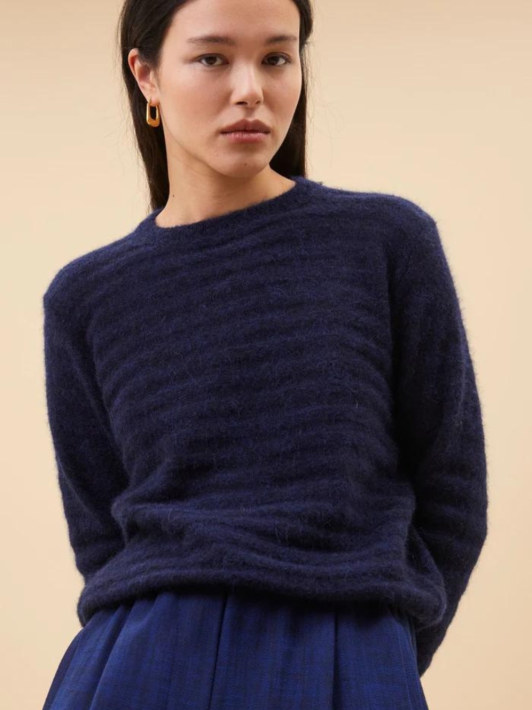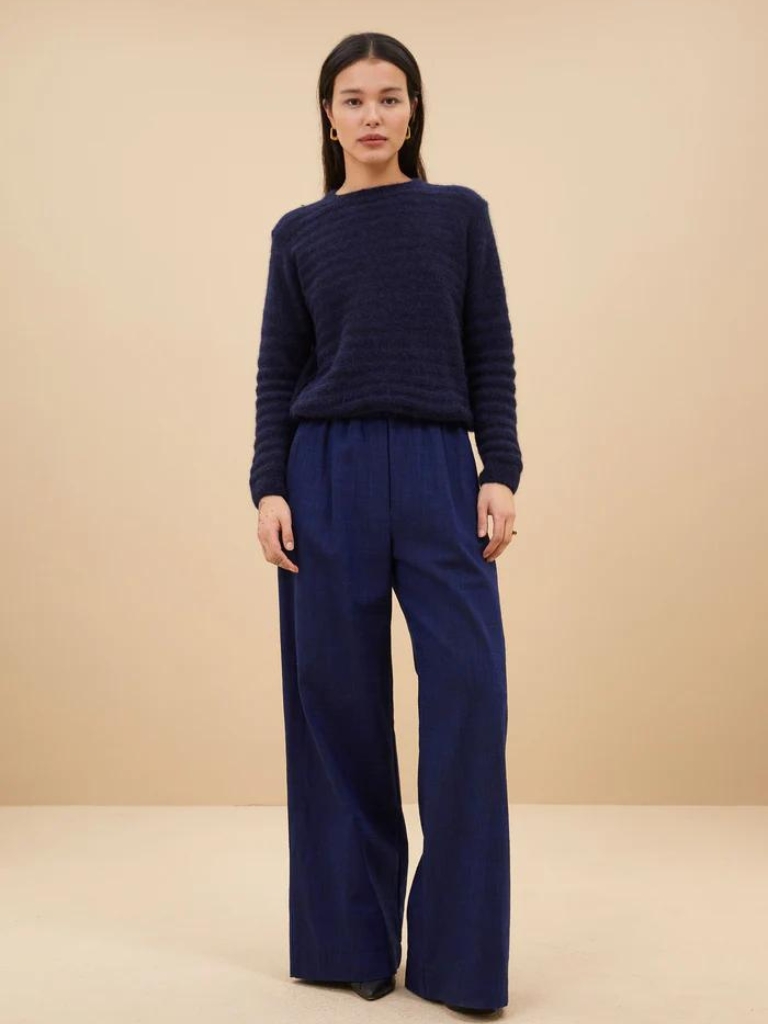 Der klassische Gwen Pullover mit Rundhalsausschnitt und normaler Passform verleiht deinem Outfit einen eleganten Touch. Aus einem weichen Wollmix gefertigt und mit kontrastierenden Streifen im Gewebe versehen, schaffst du im Handumdrehen einen zeitlosen Look. Kombiniere ihn mit den Jaden Pants, und du bist bereit für den Tag.