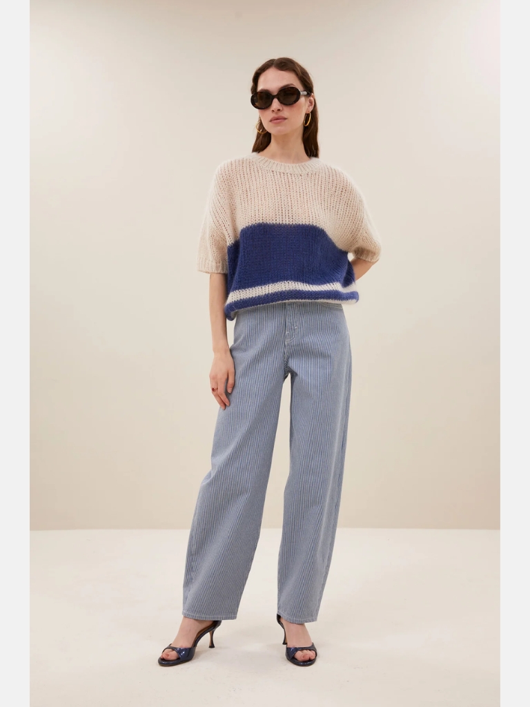 Der Nino Vintage Stripe Pullover von By-Bar ist ein lässiger Pullover mit einer entspannten, bequemen Passform. Der Rundhalsausschnitt und die kurzen Ärmel verleihen ihm einen mühelos stylischen Look. Das gestrickte Streifenmuster sorgt für einen zeitlosen Stil, wodurch du dieses Teil ganz einfach mit all deinen Lieblingsoutfits kombinieren kannst. Perfekt für den täglichen Gebrauch.