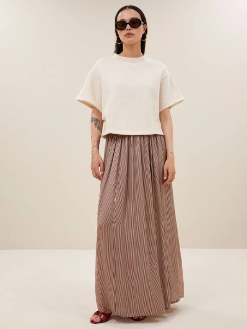 Jupe – Reva Viscose Stripe Jupe, Wine Red