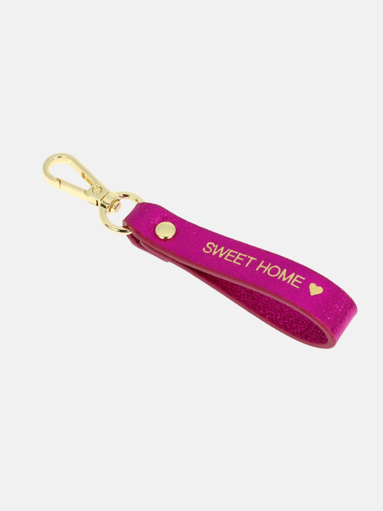 Schlüsselanhänger aus Rindsleder mit dem Schriftzug SWEET HOME, Länge: 12 cm.