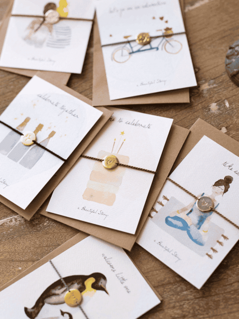 A Beautiful Story ist ein niederländisches Schmucklabel. Armbänder, Ohrringe, Ketten, Ringe werden in Nepal hergestellt. Damit wird kleinen Unternehmen vor Ort finanzielle Sicherheit garantiert. Es sind wunderschöne Schmuckstücke, die einzeln und in Kombination super aussehen zu romantischen Outfits, oder als Kontrast zu einem rockigeren Look. Die feinen, handgemachten Postkarten mit Armband gibt es für verschiedene Anlässe. Wähle deine eigene Variante und personalisiere die Postkarte mit deinem Text! Länge Armband: 100cm Material: gewachster Baumwollfaden mit einer goldenen Münze Postkarte mit Umschlag: A7, 74×105 mm