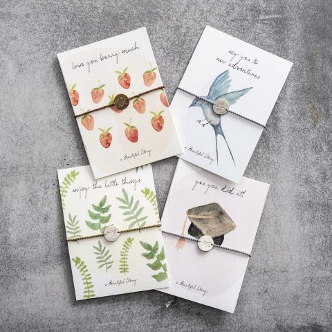 A Beautiful Story ist ein niederländisches Schmucklabel. Armbänder, Ohrringe, Ketten, Ringe werden in Nepal hergestellt. Damit wird kleinen Unternehmen vor Ort finanzielle Sicherheit garantiert. Es sind wunderschöne Schmuckstücke, die einzeln und in Kombination super aussehen zu romantischen Outfits, oder als Kontrast zu einem rockigeren Look. Die feinen, handgemachten Postkarten mit Armband gibt es für verschiedene Anlässe. Wähle deine eigene Variante und personalisiere die Postkarte mit deinem Text! Länge Armband: 100cm Material: gewachster Baumwollfaden mit einer goldenen Münze Postkarte mit Umschlag: A7, 74×105 mm