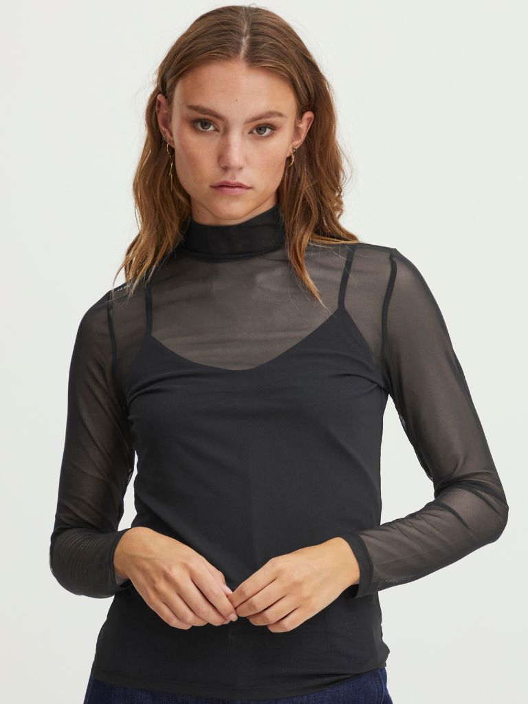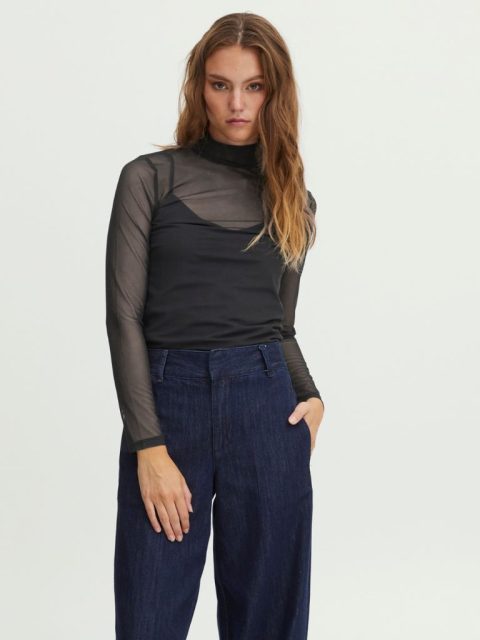 Transparentes Mesh-Shirt von Pulz Jeans. Super angenehm für Drunter, aber auch als Solo unter Blazer.