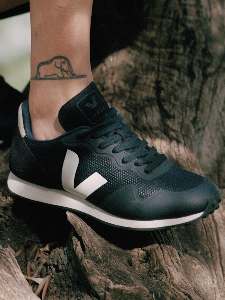 Einlegesohle: Amazonas-Kautschuk (10 %), biobasiertes E.V.A. (38 %, davon 31 % Zuckerrohr), recyceltes E.V.A. (11 %), Bio-Baumwolle (18 %) und Sonstiges (23 %)