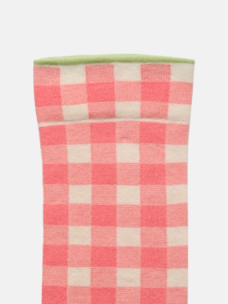 Die Vichy Socks von Bonne Maison überzeugen mit klassischem Karomuster und hochwertiger Verarbeitung. Die halbhohen Socken sind angenehm zu tragen und vielseitig kombinierbar – ein stilvolles Detail für den Alltag. Gefertigt aus ägyptischer Baumwolle mit Elastan-Doppelfaden bieten sie eine ideale Kombination aus Komfort und Langlebigkeit.