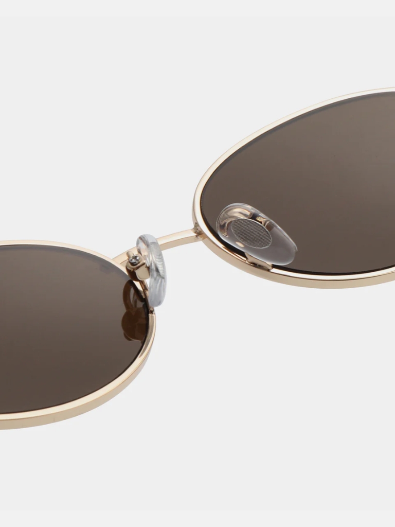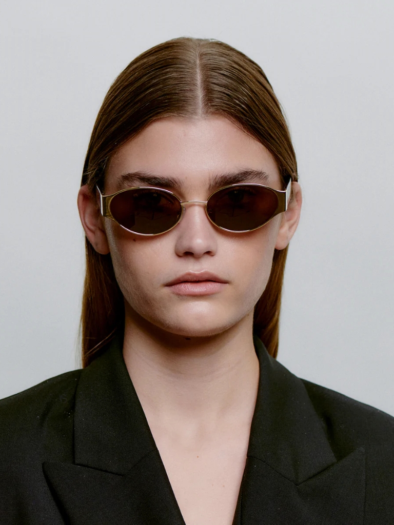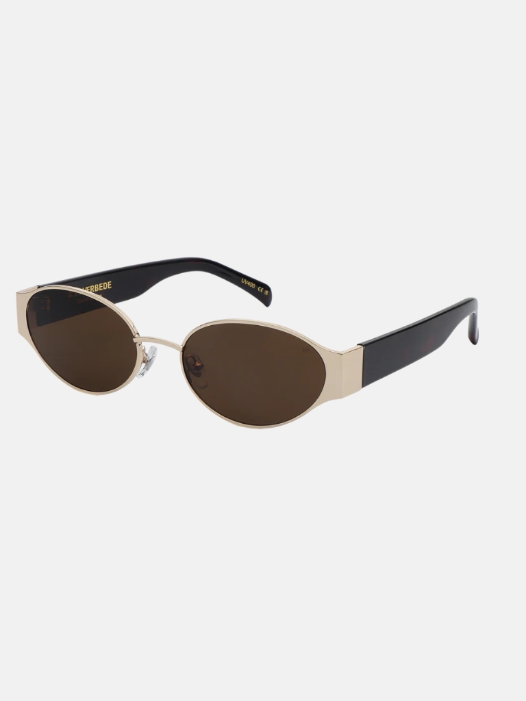 BELLA – Gold Demi Tortoise von A. KJÆRBEDE ist eine kompakte Sonnenbrille mit ovaler 90er-Jahre-Attitüde und leichter Cat-Eye-Form, die einen klaren, eleganten Ausdruck verleiht. Das Modell verbindet modisches Design mit einfacher Tragbarkeit und funktioniert sowohl als dezentes Detail im Alltag als auch als stilvolles Statement.
