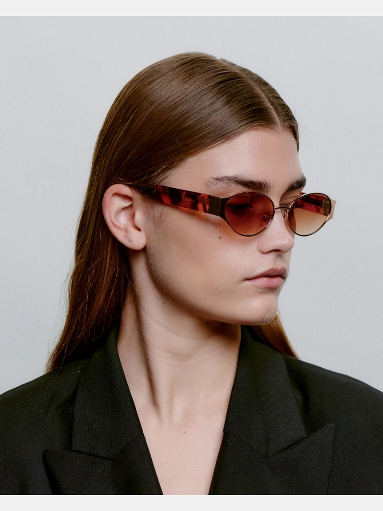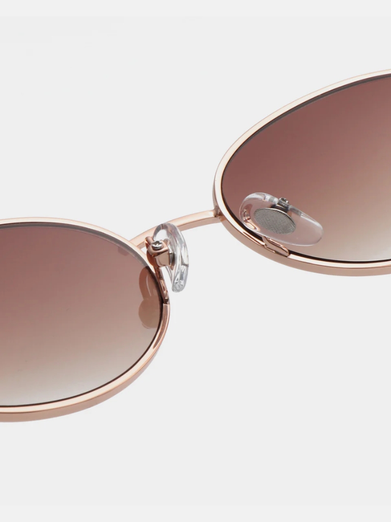 BELLA – Rosegold Havana von A. KJÆRBEDE ist eine kompakte Sonnenbrille mit ovaler 90er-Jahre-Attitüde und leichter Cat-Eye-Form, die einen klaren, eleganten Ausdruck verleiht. Das Modell verbindet modisches Design mit einfacher Tragbarkeit und funktioniert sowohl als dezentes Alltagsdetail als auch als stilvolles Statement.