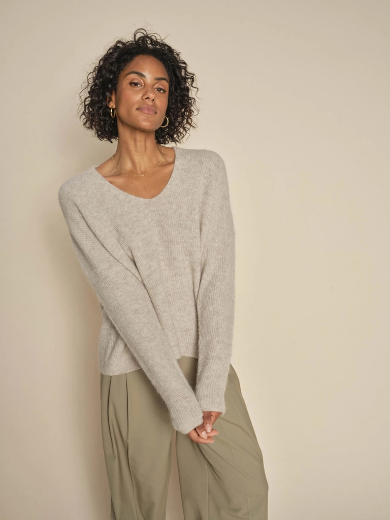 Strick – Thora V-Neck, Feather Gray