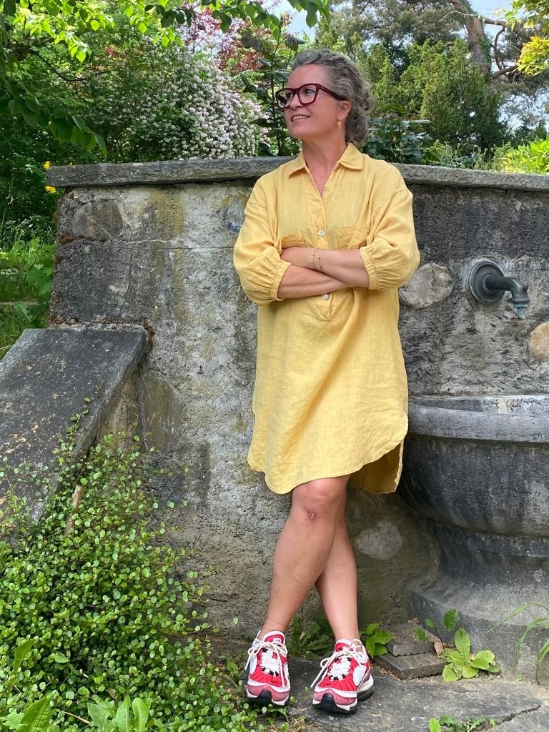 Die Tunika KARLA hat einen etwas weiteren Schnitt und einen überschnittenen Arm, der 3/4 Länge hat. Sie fällt sehr gross aus und ich empfehle 1-2 Grössen kleiner zu wählen. Die seitlichen Abrundungen machen sie perfekt für die Kombination mit einer Hose. Für kleinere Frauen evtl. auch als Kleid geeiignet.