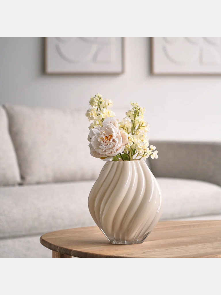 Rilo ist eine mundgeblasene Glasvase in einem skulpturalen und auffälligen Design – geschaffen, um als dekoratives Highlight im Raum zu wirken. Mit ihren weichen, gedrehten Linien und warmen Nuancen verleiht die Vase einen ruhigen und organischen Ausdruck, der dem Raum Tiefe und Harmonie schenkt. Rilo ist ein künstlerisches Element in der Einrichtung, das Ästhetik mit Präsenz verbindet. Eine ideale Wahl für alle, die mit Charakter und Qualität einrichten möchten – und die es lieben, wenn Details den Unterschied machen.